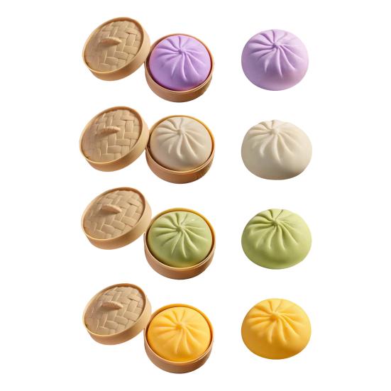 Реалистичная упаковка для пароварки в комплекте: Каждая игрушка-булочка упакована в декоративную пароварку, имитирующую аутентичную подачу еды.. Эта уникальная упаковка улучшает игровой процесс, создавая впечатление, что булочки только что приготовлены на пару и готовы к употреблению, добавляя элемент очарования и новизны.