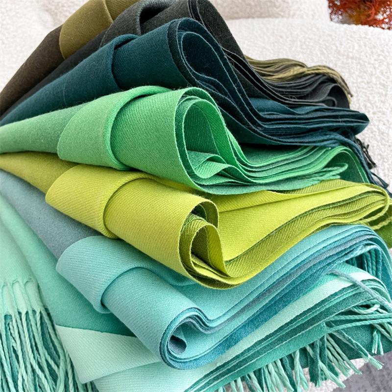 Модный однотонный кашемировый теплый шарф женский дизайн пашмина зимний двусторонний разного цвета шаль обертывание буфанда кисточки одеяло