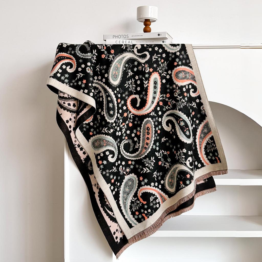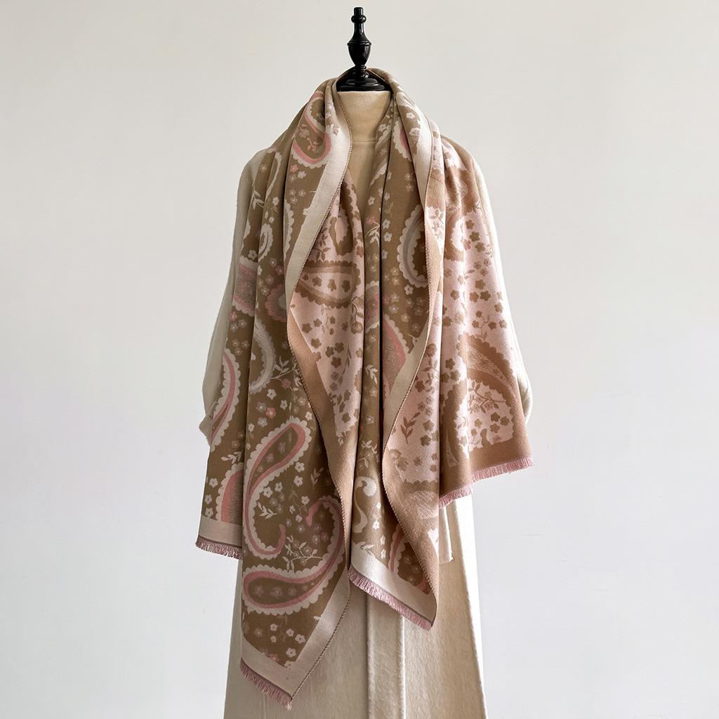 Women Cashmere Scarf Winter Paisley Patterned Thick Warm Blanket Scarf Cashew Flower Scarves Fashionable And Luxurious