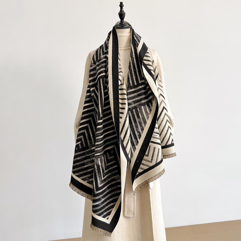 Роскошный шарф с геометрическим принтом для женщин, теплый зимний пашмина, двусторонние шарфы, шали, женский толстый плед, накидки, фуляр