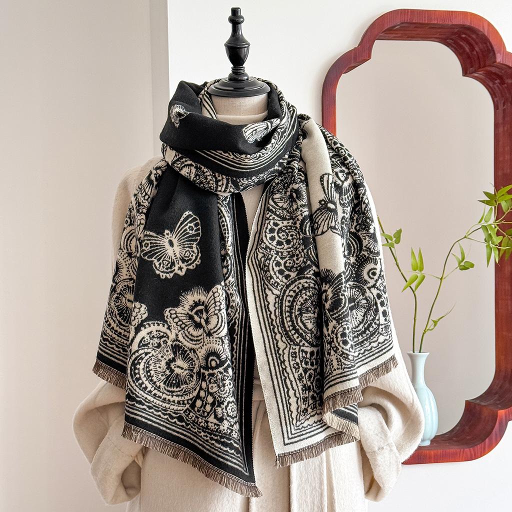 Этнический Элегантный Женский Пашминовый Жаккардовый Шарф Зимний Толстый Теплый Высококачественный Шаль Защищающее от Холода Одеяло Женщины