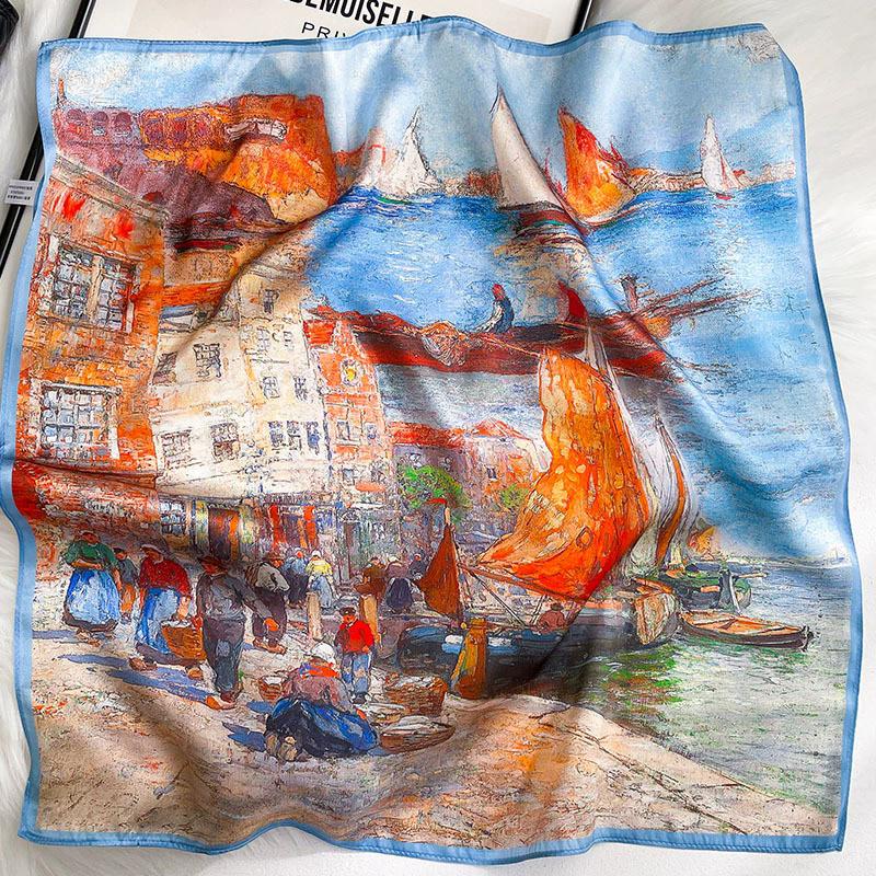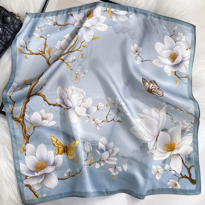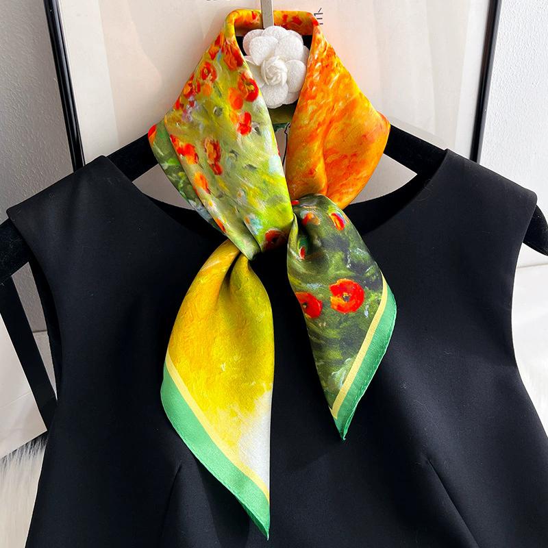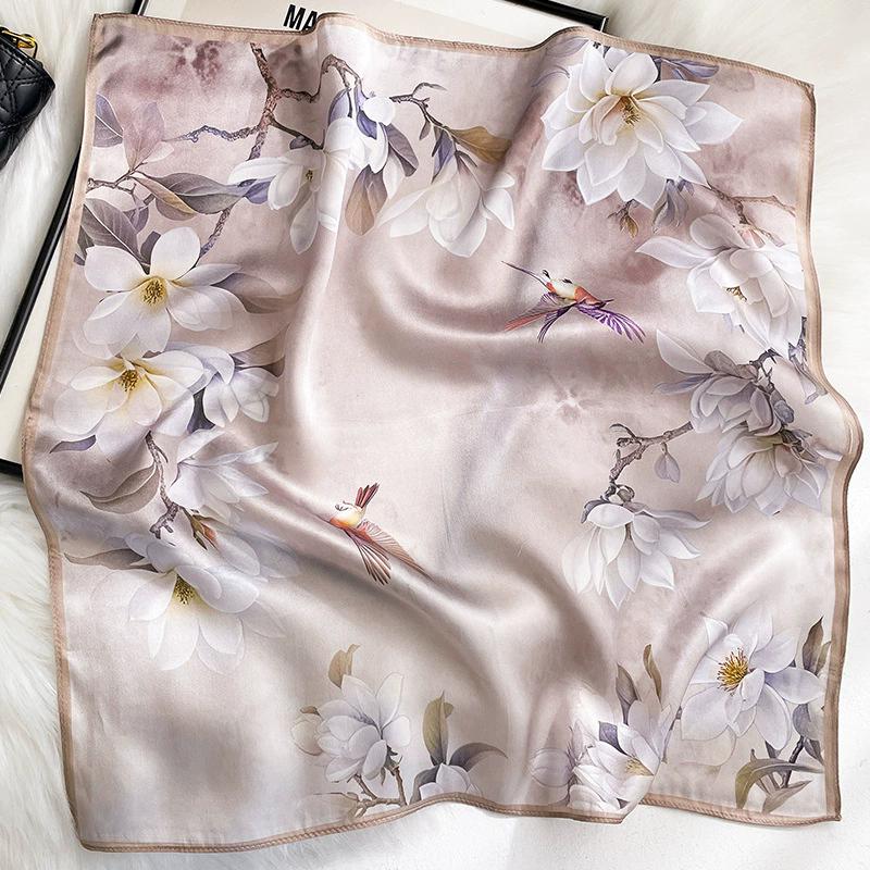 Pure Silk Scarf Women Neck Square Headband Scarves Bandana Fashion Hijab Poncho Scarves Pashmina Female Foulard 53Cm