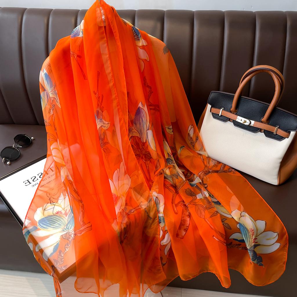 Модные солнцезащитные шарфы из атласа Женские 180*130 см Стиль Пляжное полотенце Популярный принт Шелковый платок Роскошная пылезащитная Большая бандана