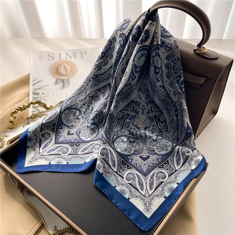 Paisley Print Square Scarf Soft Satin Silk-Like Thin Neck Scarf Mature Style Bandana Sunscreen Headscarf For Women