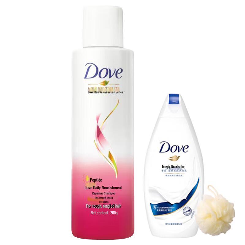 This Dove Daily Nourishing Hair & Body Care Set provides a complete cleansing and care routine. It includes Dove Daily Nourishing Repair Shampoo for normal hair, a hydrating Dove Shower Gel, and a convenient bath ball for an enhanced shower experience. Suitable for various skin and hair types, offering daily nourishment and cleanliness.