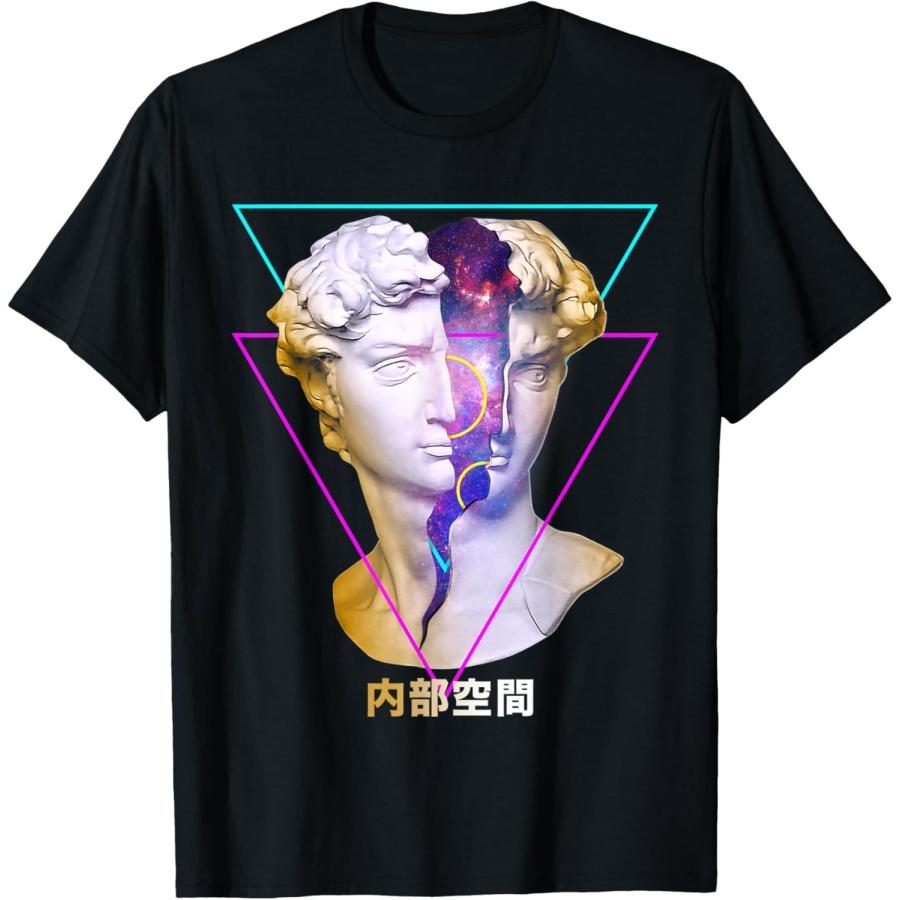 Vaporwave Statue David Bust With Outer Space Japanese Kanji T-Shirt
