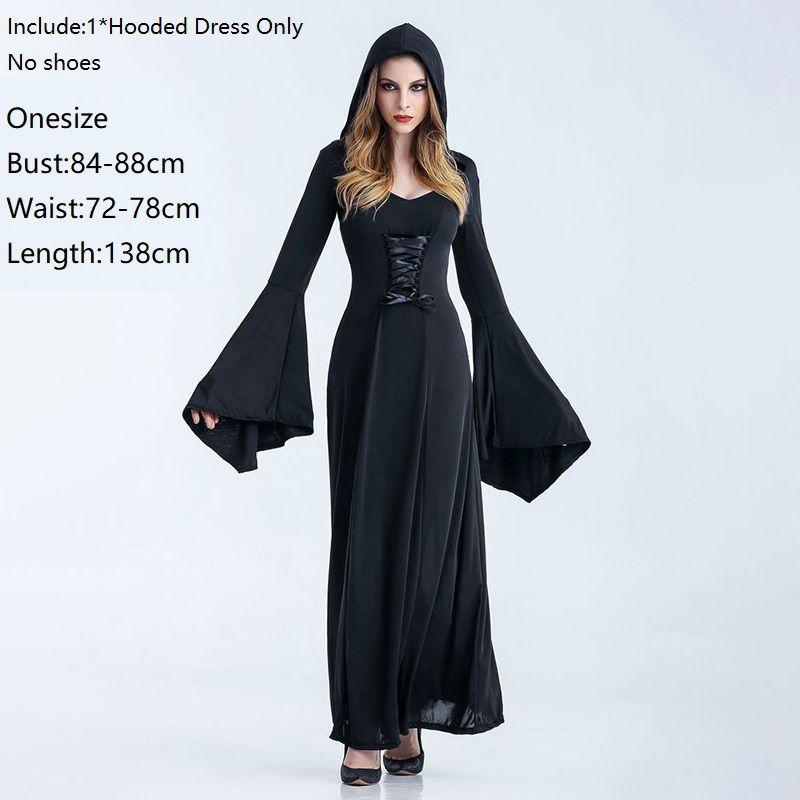 Очаровательное женское готическое платье ведьмы-волшебницы с капюшоном, расклешенными рукавами и шнуровкой — купить товар онлайн с бесплатной доставкой по всему миру!