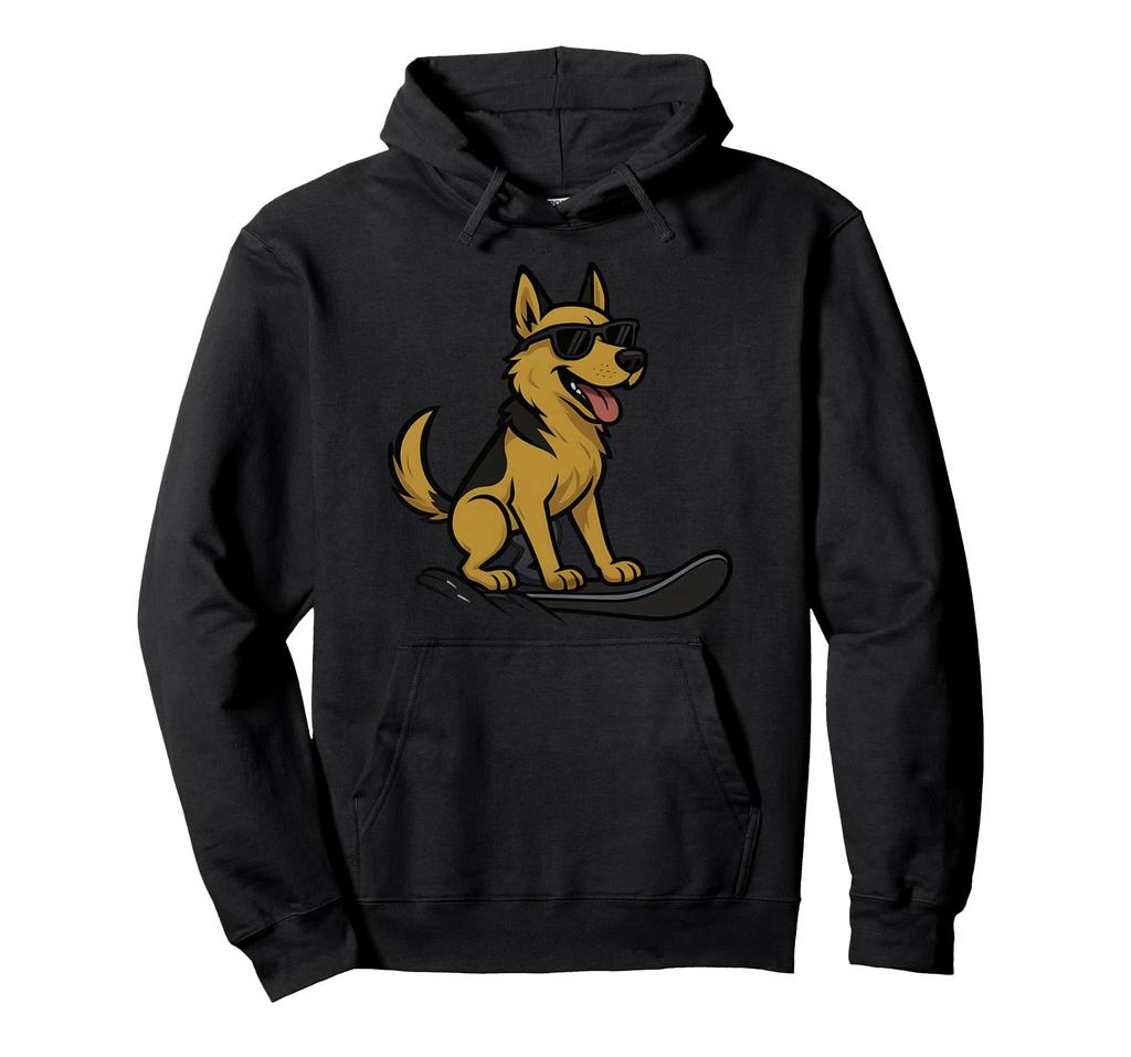 Cool Shepherd Dog with Sunglasses Snowboarding Winter Snow Mountain Funny Anime-Style Hoodie