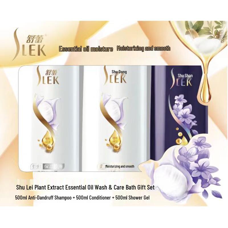 Experience comprehensive hair and body care with the Shu Lei Plant Essential Oil Gift Set. This luxurious set includes a 500ml Anti-Dandruff Shampoo to effectively cleanse and protect your scalp, a 500ml Moisturizing Conditioner for soft, smooth hair, and a 500ml Shower Gel for a refreshing body cleanse. Formulated with plant extracts and essential oils, it helps repair and moisturize, suitable for various skin types, ensuring a rejuvenating experience from head to toe.