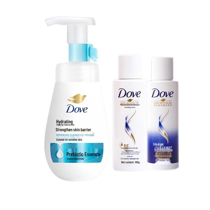 This Dove set offers a complete daily care routine, featuring a 160ML Purifying Oil & Softening Facial Cleansing Foam for a fresh, soft complexion, complemented by two 100g bottles of Dove Shampoo and Conditioner (random fragrance) to nourish and moisturize your hair. Made in mainland China, this non-special cosmetic bundle ensures a 3-year shelf life, providing effective moisturizing benefits for both skin and hair.