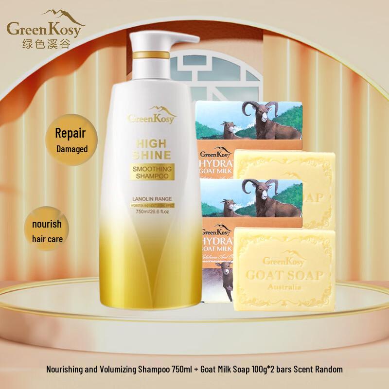 Indulge your hair with the Green Valley Lipid-Rich Volumizing Silky Shampoo, designed to smooth, repair, and enhance vertical texture for normal hair and neutral scalps. This luxurious shampoo leaves your hair feeling soft and full of life. This set also includes two 100g bars of moisturizing goat milk soap, with scents chosen at random, for a complete body care experience. Enjoy a 3-year shelf life on this quality product.