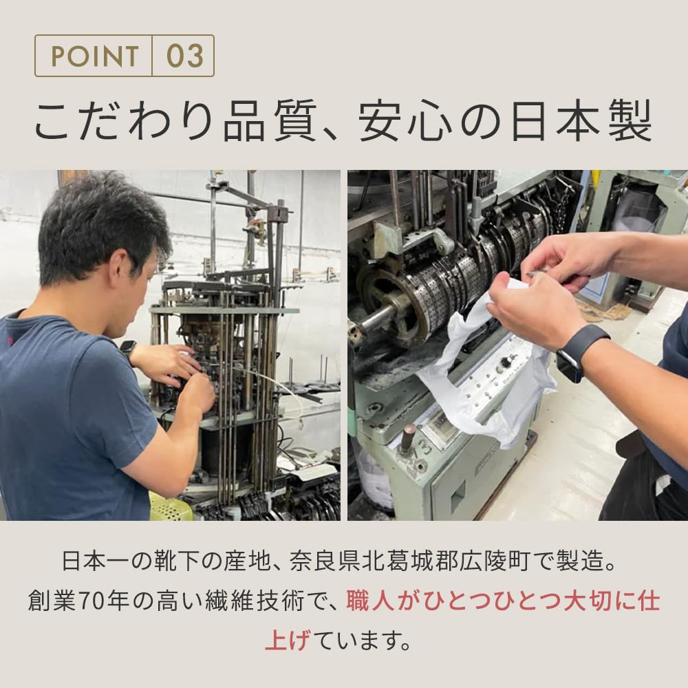[Мастерство в Корё-тё, Нара]: Каждый носок тщательно изготавливается опытными мастерами в Корё-тё, Китакацураги-гун, префектура Нара, ведущем регионе Японии по производству носков.. Бескомпромиссное качество во всех аспектах, от текстуры до строчки и долговечности. Текстура остается прочной даже после многократных стирок, обеспечивая долговечность.