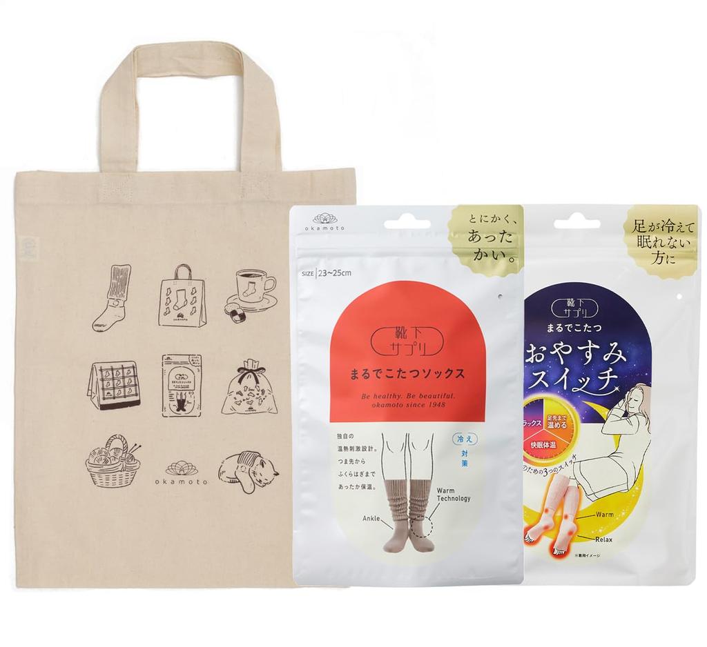 Okamoto Sock Just Like a Kotatsu Sleep Set of Warm Room Cold Tote Mocha Brown x Supplement, Socks, Switch, 2, Women's Socks, Protection, Winter, Bag,