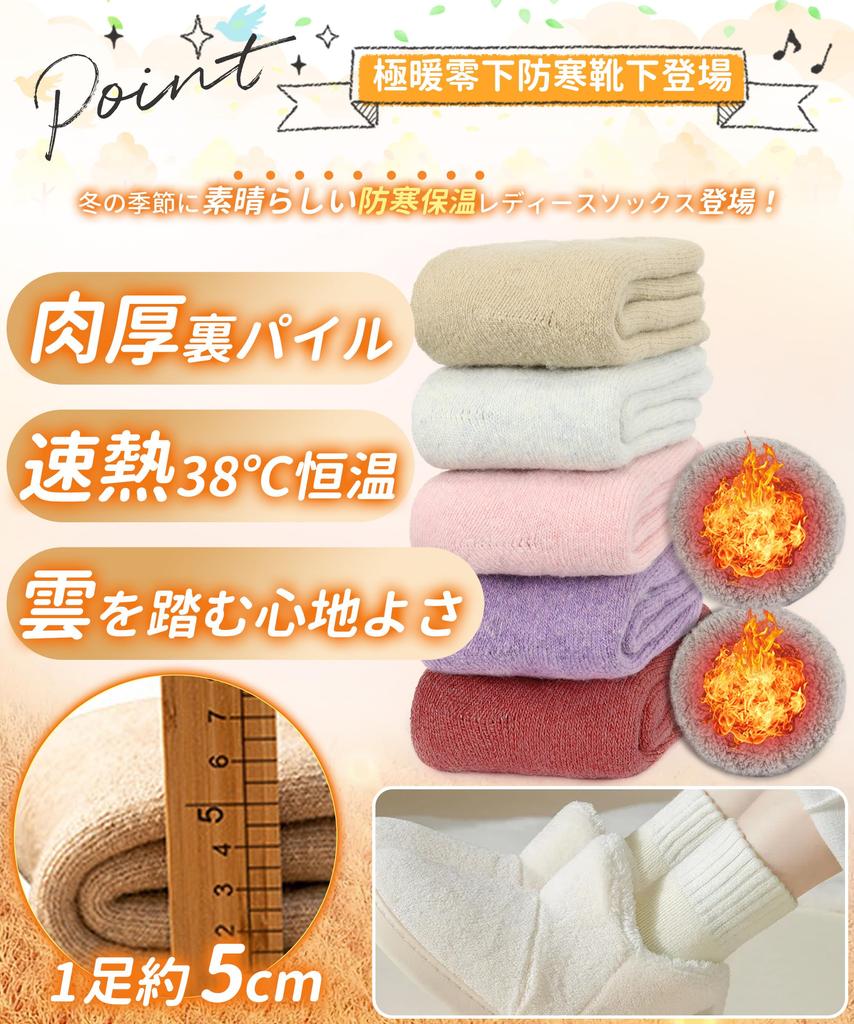 Start your warm journey with these convenient 3-pair and 5-pair socks. Available in a wide range of colors, they're easy to coordinate with any outfit. With just the right thickness and a length of approximately 33cm, these women's winter socks are perfect for not only casual wear, but also for commuting, sleeping, running, camping, hiking, skiing, and mountain climbing.