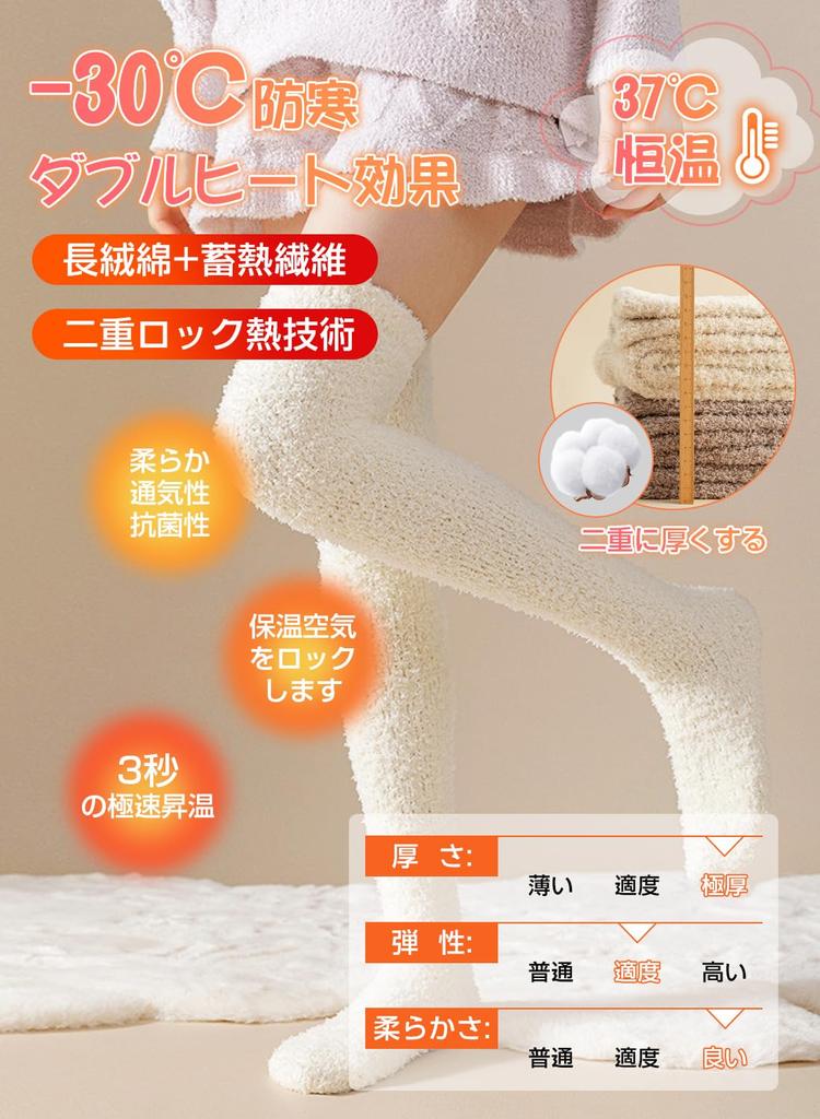 [Супер Теплые и Защита от Холода] Наши женские носки изготовлены из высококачественного, очень толстого кашемира с начесом, который в пять раз теплее обычных носков и выдерживает температуры до -30°C, поэтому вы не почувствуете холода, даже если будете носить их в чрезвычайно холодном климате! Дизайн длиной 60 см закрывает область икр, блокируя холодный ветер и сохраняя тепло даже в холодную погоду.