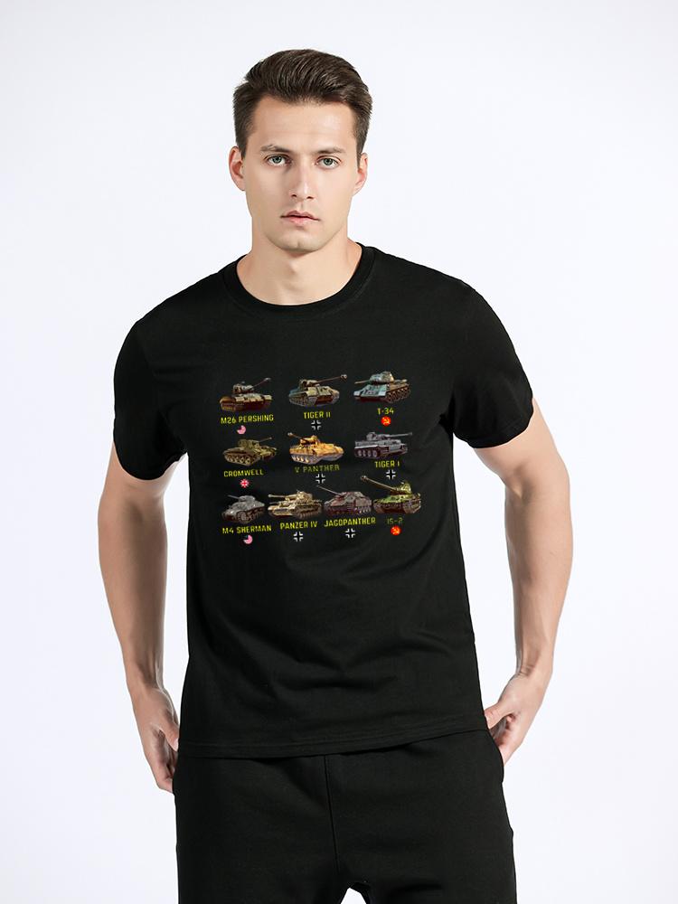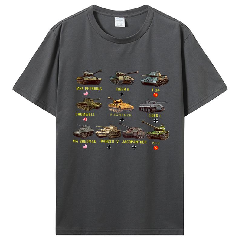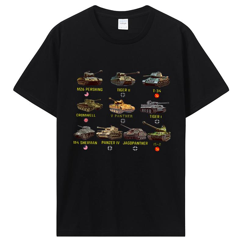 New Tanks M4 Sherman Panzer IV Tiger II T-34 T-Shirt Men Casual Cotton TShirt Cool T Shirt Tees Harajuku Streetwear