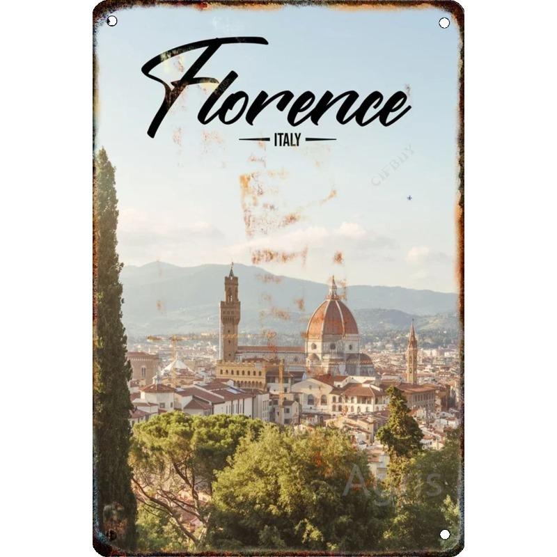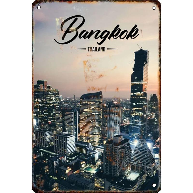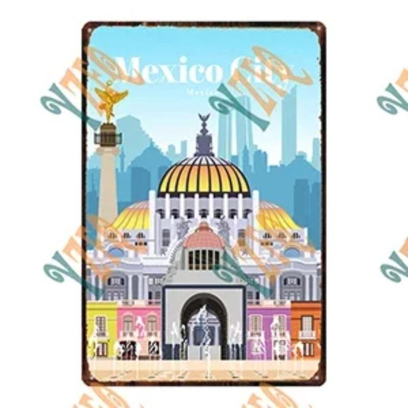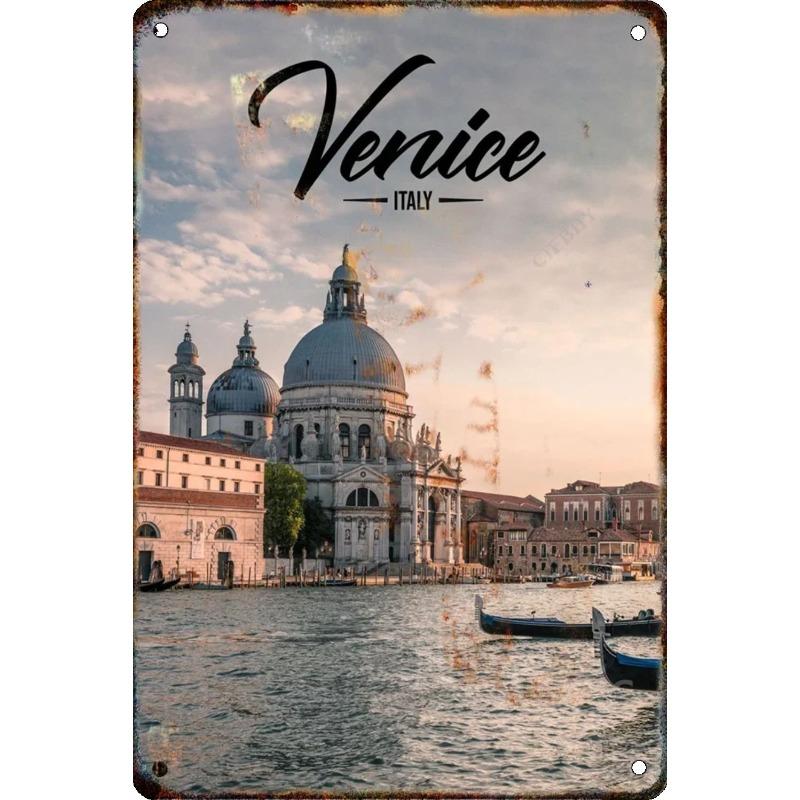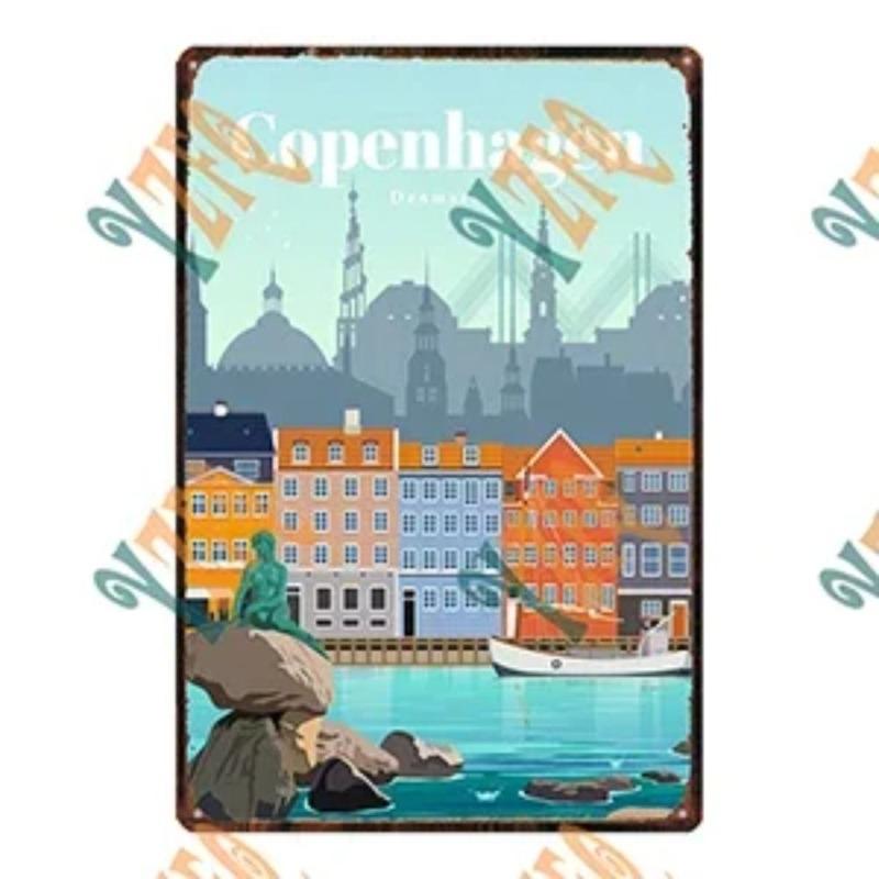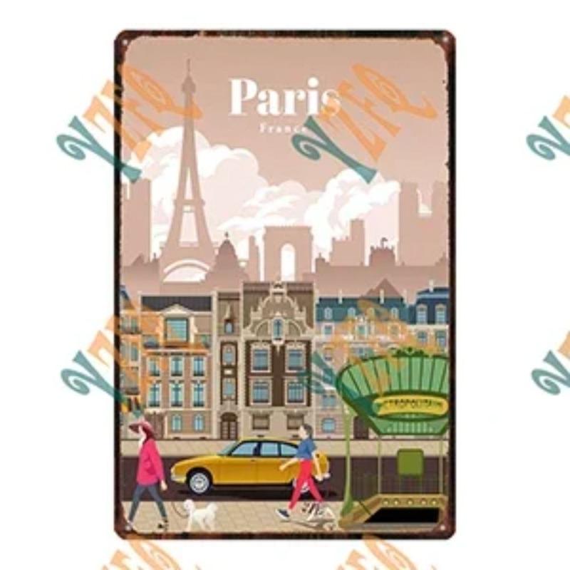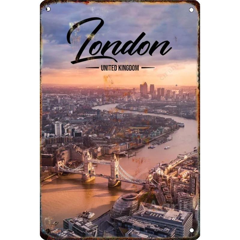 Металлическая табличка 'Путешествие по городу', Декор для стен с городским пейзажем 20x30см