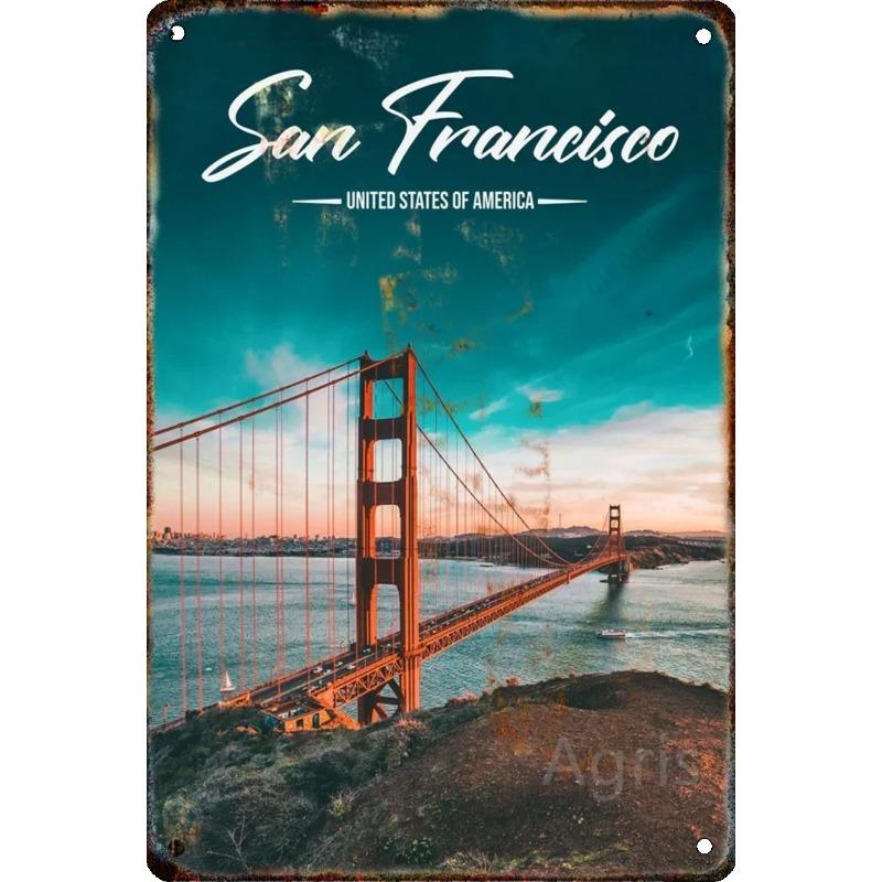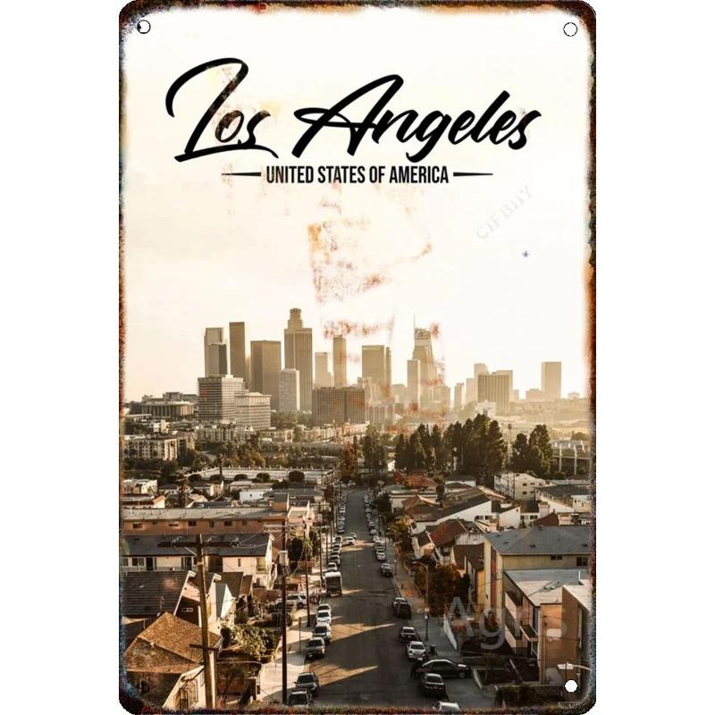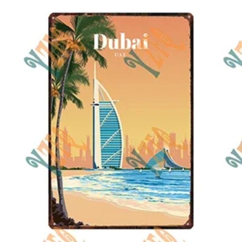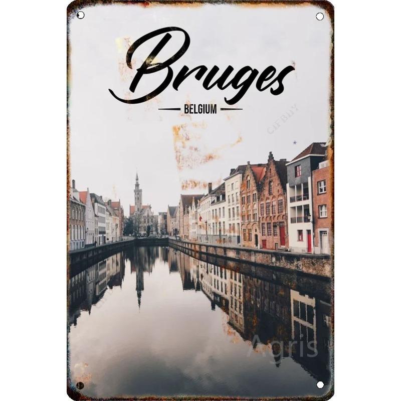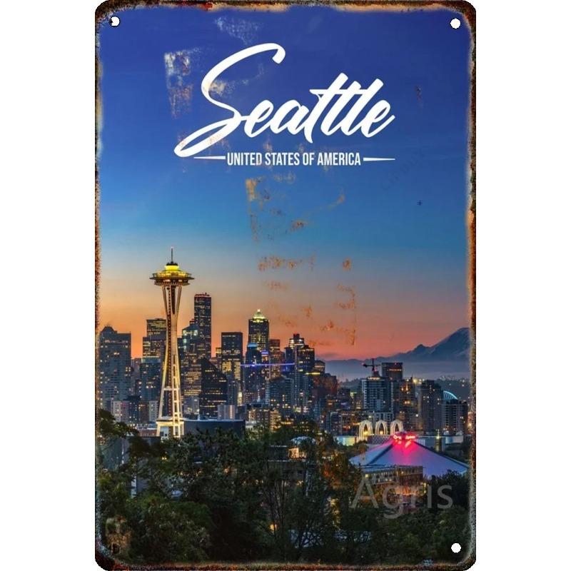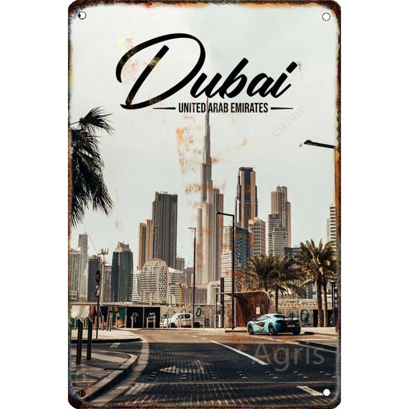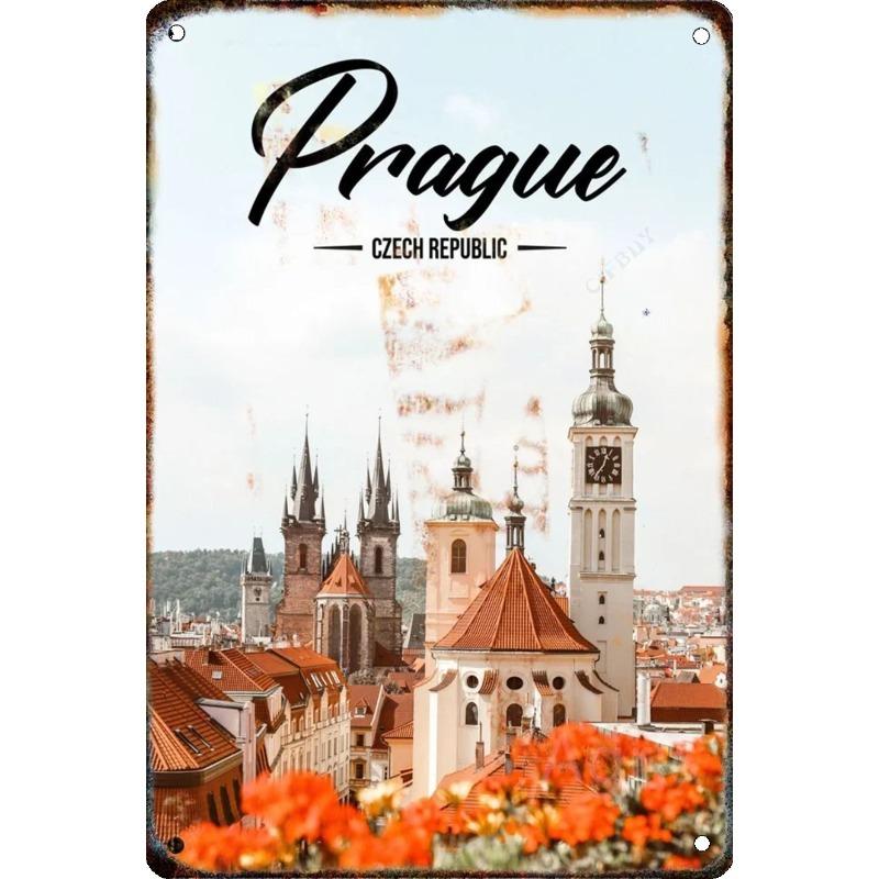 Металлическая табличка 'Путешествие по городу', Декор для стен с городским пейзажем 20x30см