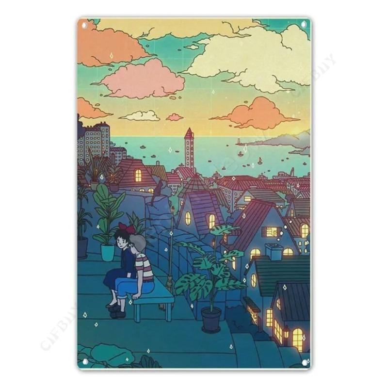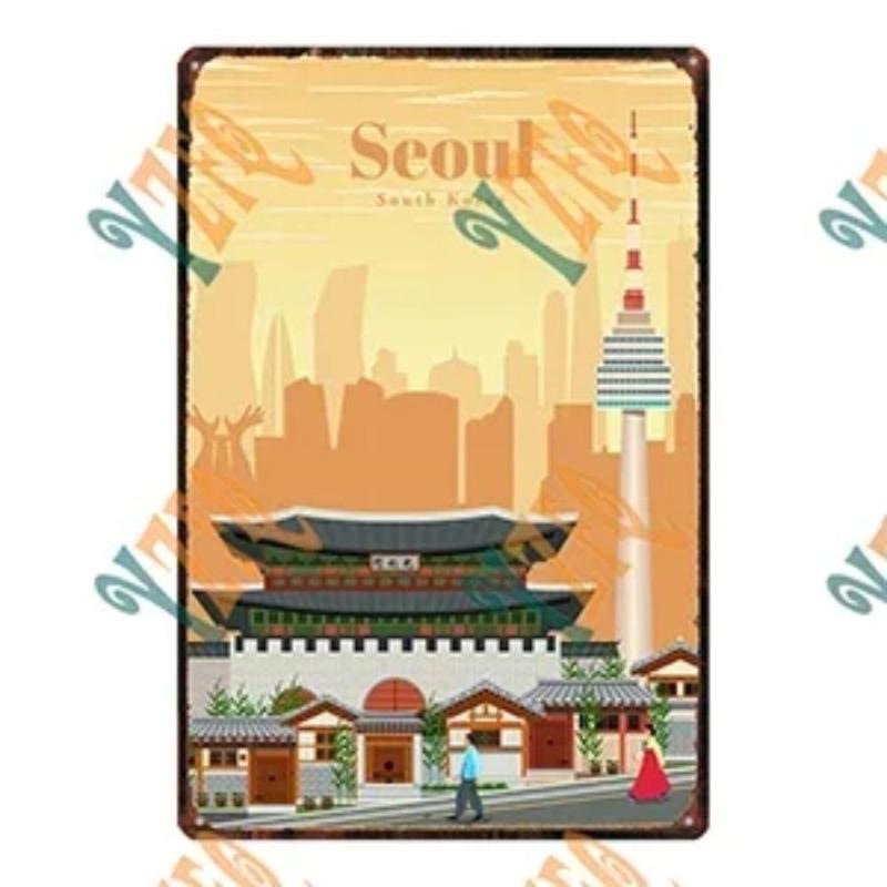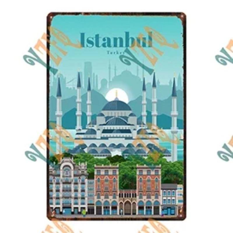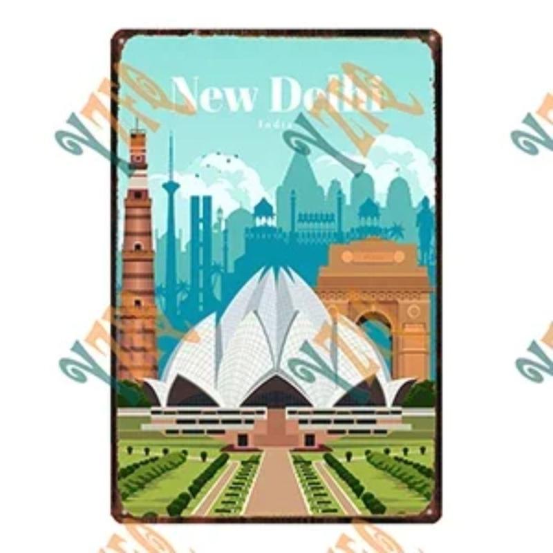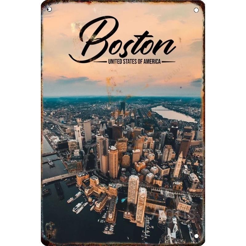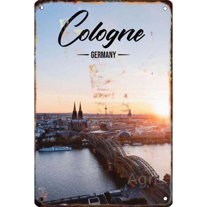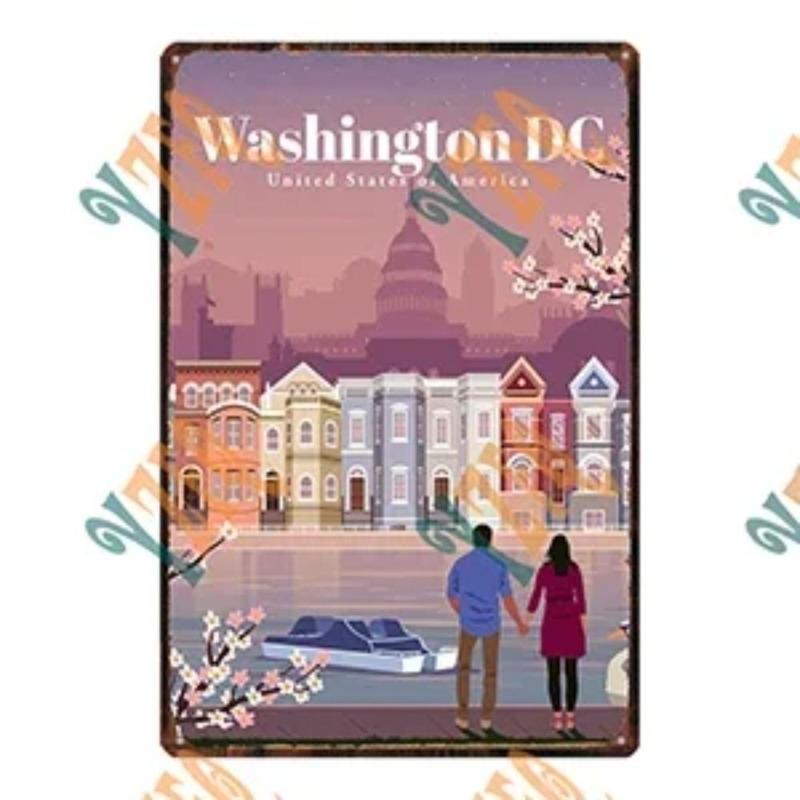 Металлическая табличка 'Путешествие по городу', Декор для стен с городским пейзажем 20x30см
