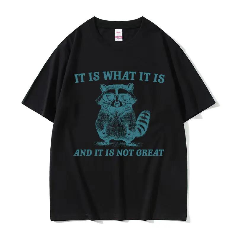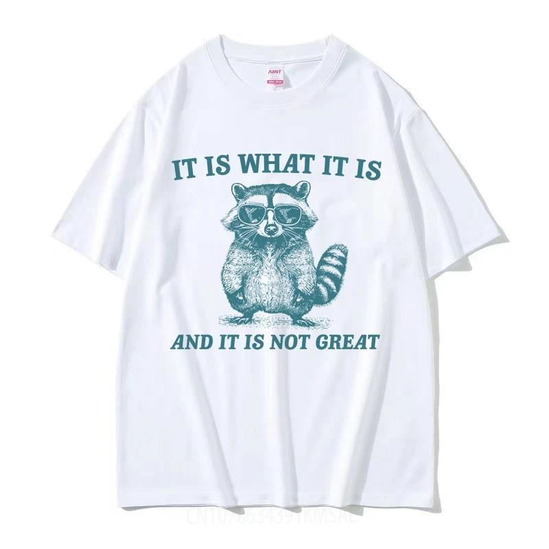 It Is What It Is and It Is Not Great Raccoon Funny Meme T-Shirt Men Women Harajuku Retro Fashion High Quality T Shirts Oversized