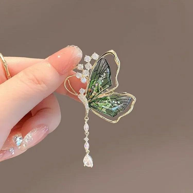 Бабочка Высококачественная брошь Темпераментная булавка Изысканная кисточка Металлическая брошь Индивидуальные аксессуары