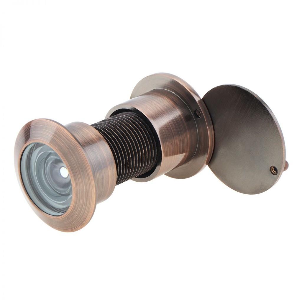 - Дверной глазок из прочного латунного металла с очень простой установкой. Подходит для дверей толщиной от 1,38 до 2,36 дюйма. Просто просверлите в подходящем месте отверстие диаметром 1,1 дюйма, вставьте в него глазок, затем скрепите обе стороны винтами и затяните вручную. После установки вы сможете видеть большую часть пространства.