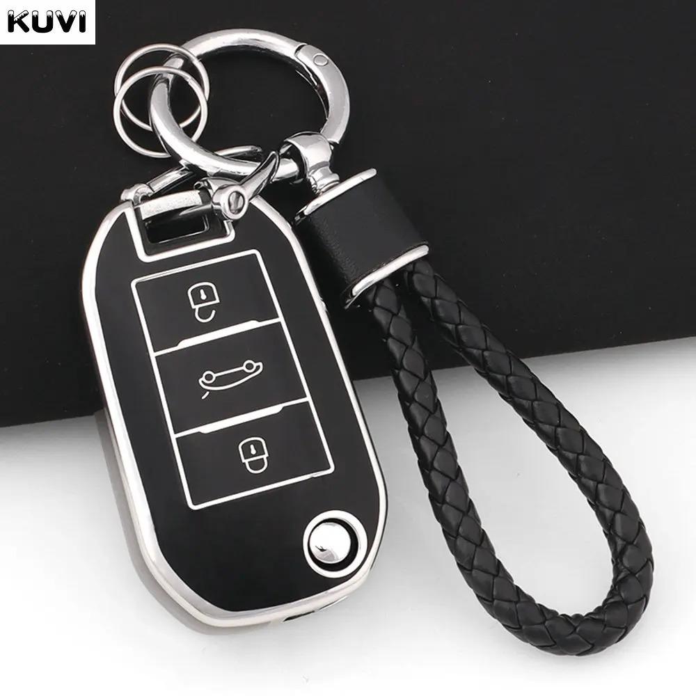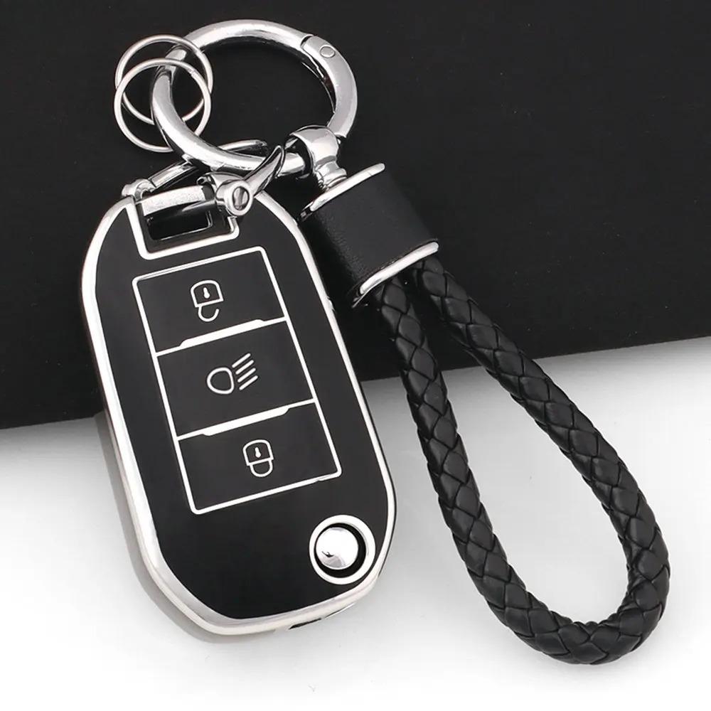 ТПУ Чехол-книжка для ключа автомобиля Брелок для Peugeot 208 308 408 508 2008 3008 4008 5008 Цепочка для ключей Citroen C3 C4 CACTUS C6 C8
