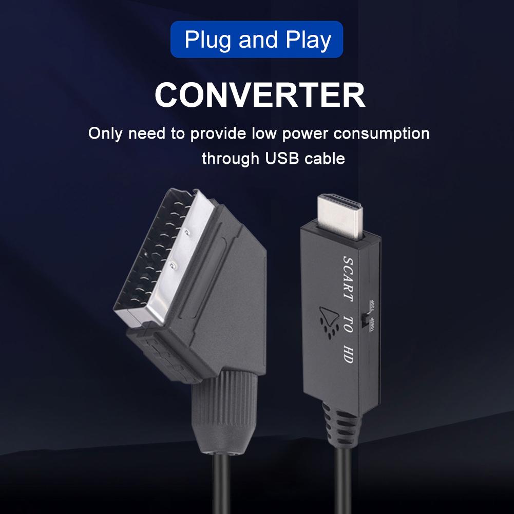 1 м Переключатель-конвертер Scart в HDMI-совместимый 1080P Видеоконвертер Адаптер DC 5V Кабель Micro USB Аксессуары для ТВ-приставки