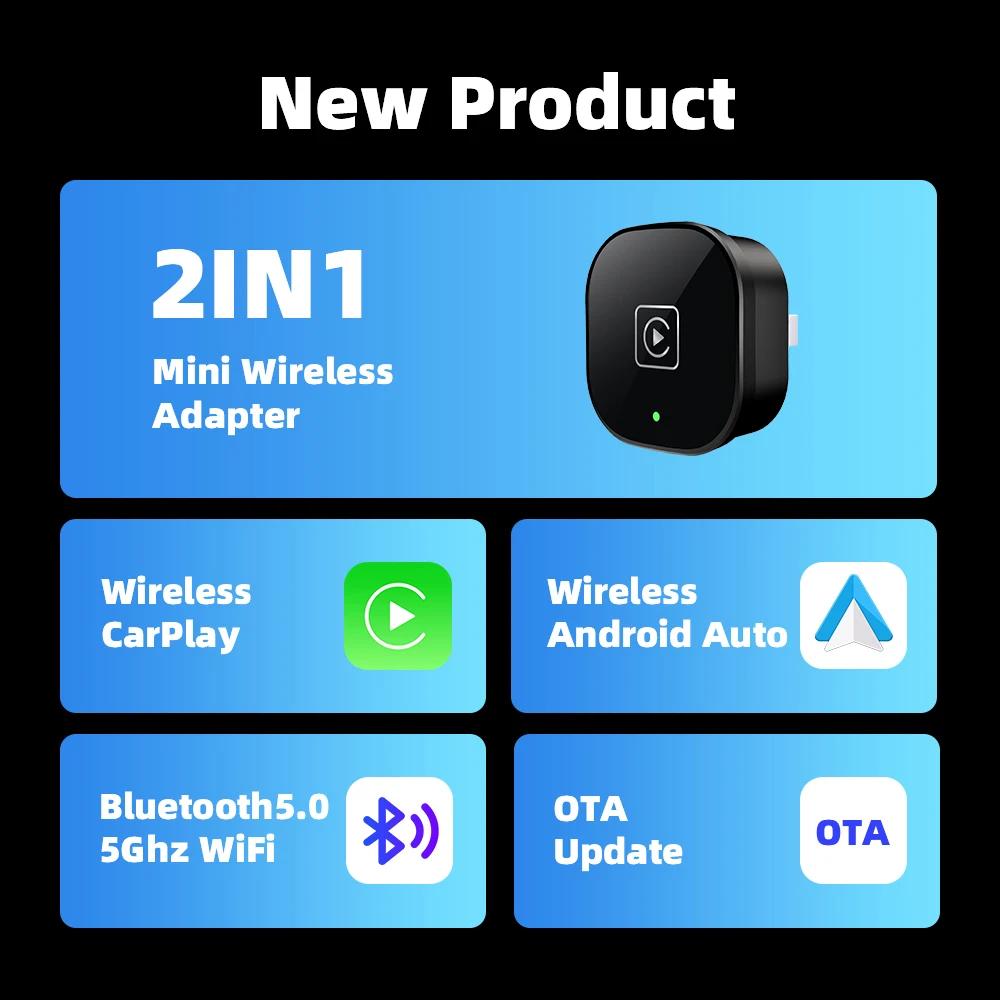 Адаптер 2-в-1 Проводной в Беспроводной CarPlay Android Auto для Штатной Автомагнитолы с USB Plug and Play Для Volvo Benz Mg Kia Chery VW