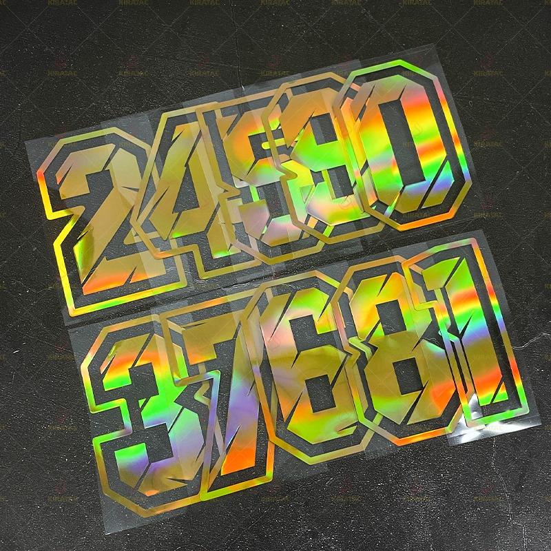 1 шт. Золотые лазерные наклейки с цифрами от 0 до 9, водонепроницаемые, для мотоциклетного шлема, обтекателя, кофра, кузова автомобиля, универсальная виниловая наклейка