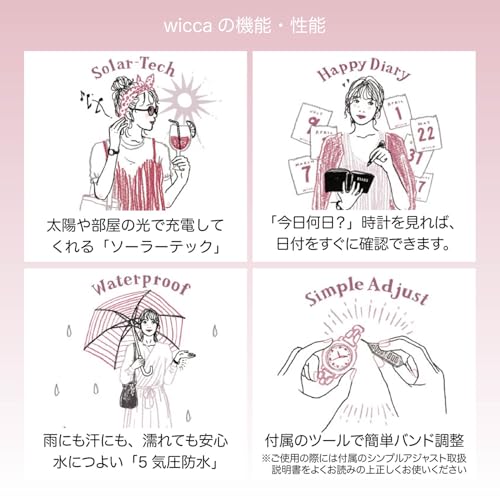 ・[Легкая и повседневная модель на тему макияжа] Дизайн этих часов на солнечной батарее вдохновлен воодушевлением от нанесения макияжа и косметическими средствами. Он создан с надеждой, что ношение часов поднимет вам настроение и поможет начать день с радостью.. Часы WICCA отличаются дизайном, который заставляет ваше сердце трепетать при каждом взгляде, и восхитительными функциями, которые всегда к вашим услугам.. «Моменты радости», запечатленные WICCA, непременно подарят вам маленькие, искрящиеся мгновения волшебного счастья.