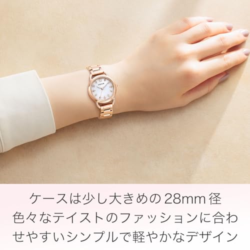 ・[Включает сменные ремешки для различных случаев] Простой и легкий дизайн дополняет различные стили одежды. Он поставляется со сменным ремешком розово-бежевого цвета, напоминающим теплый румянец.. Корпус немного больше, 28 мм. Рисунок циферблата вдохновлен пудрой для лица. Искрящиеся элементы огранки расположены в позициях 1, 5, 7 и 1 часа, а ромбовидные элементы, инкрустированные кристаллами, в позициях 3 и 9 часов символизируют сияние теней для век.