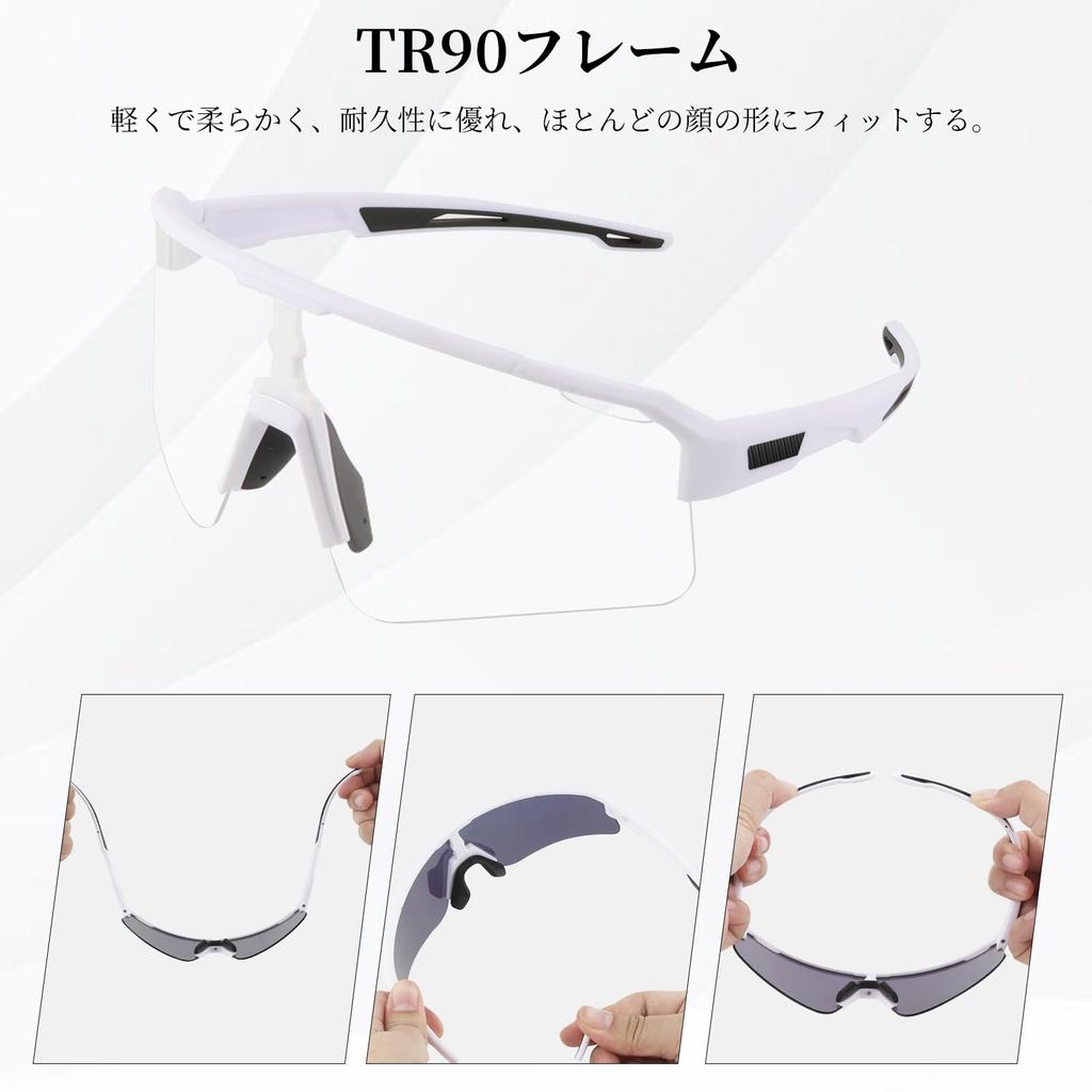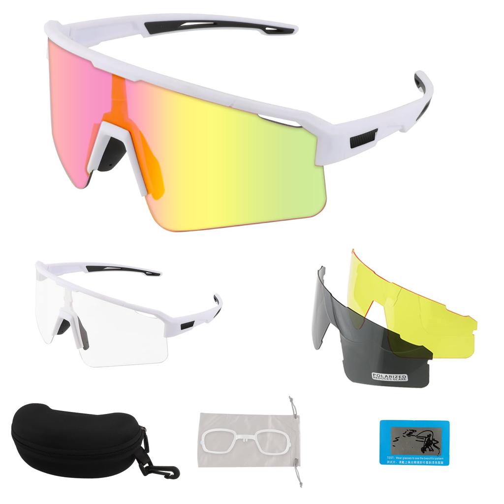 FOCUHUNTER Polarized Sports Sunglasses with 3 Interchangeable Lenses (Polarized, Yellow, and Pink Mirrored Lenses), White Half Frame, Cycling Glasses