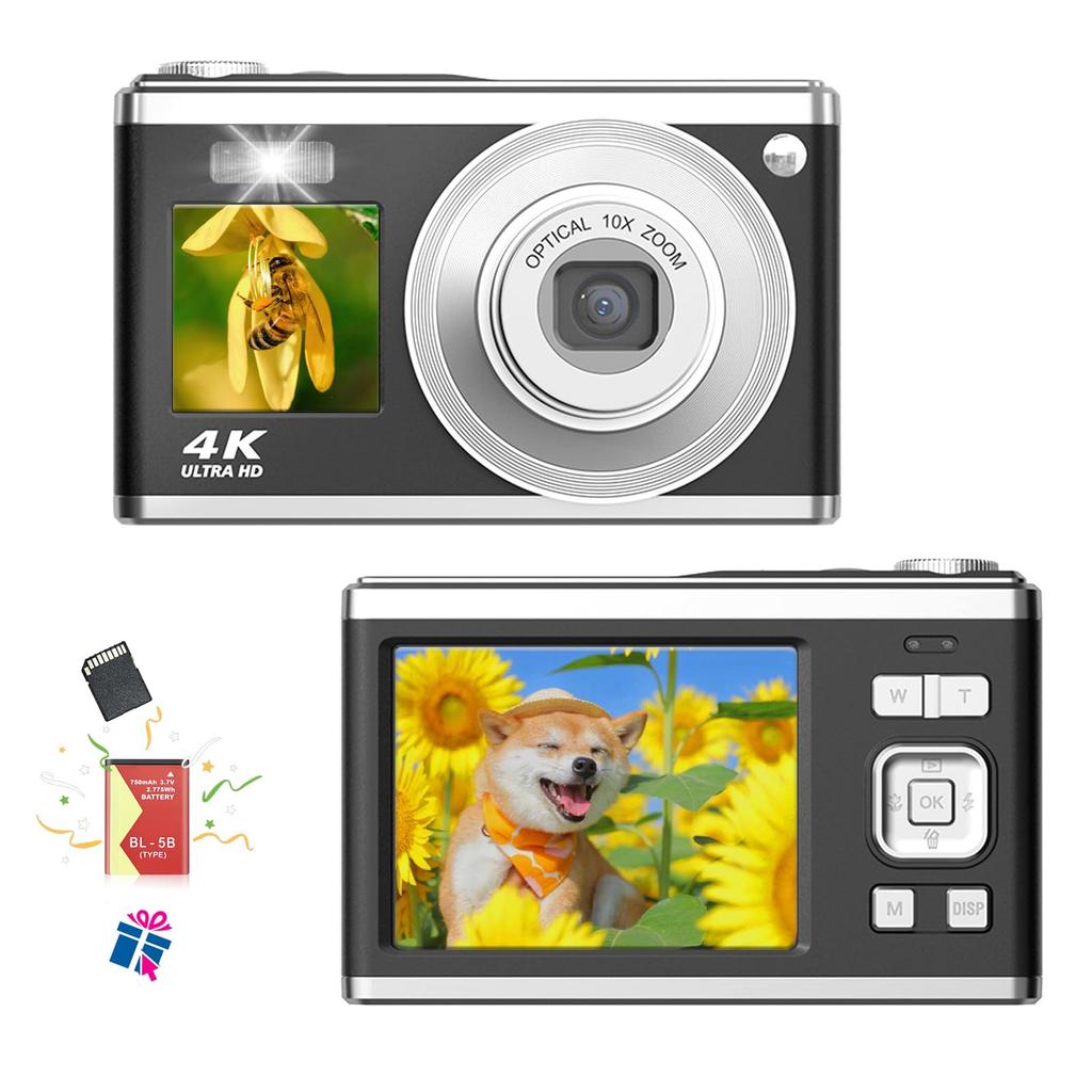 Popular 4K Digital Camera, 60MP Mini, 10x Optical Zoom, Compact, Lightweight, Rechargeable, Autofocus, HD 4K Recording, CMOS Sensor, 2.88-inch IPS