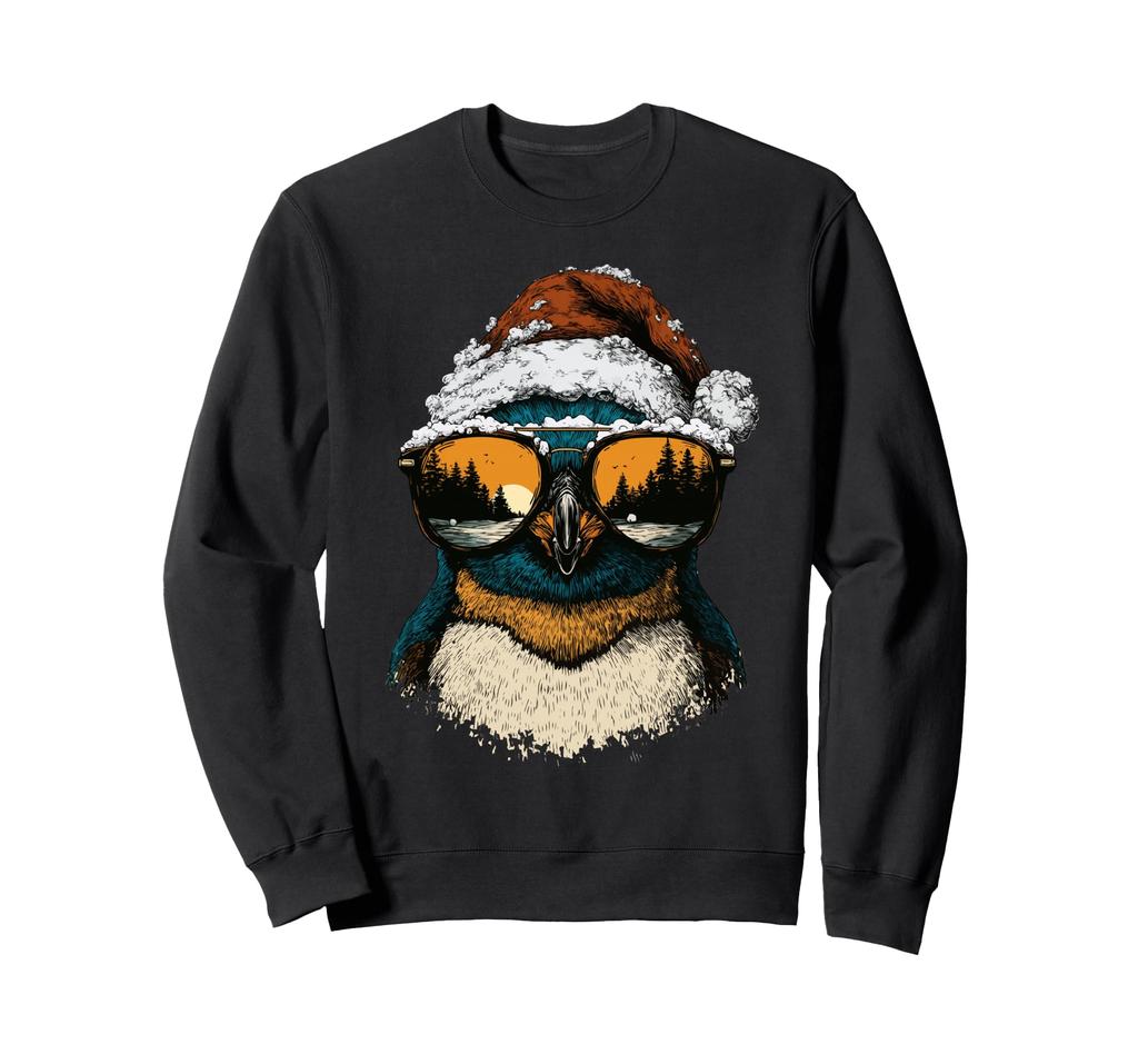 Cute penguin with sunglasses and snowflakes, Santa hat, Christmas animal sweatshirt