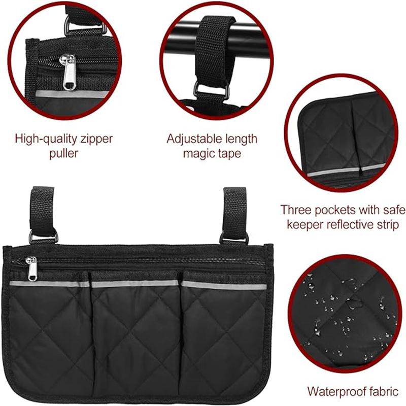 Боковая сумка для инвалидной коляски для заднего колеса, сумка-кошелек для хранения, подходит для большинства кроватных поручней, скутеров, ходунков, электрических и механических инвалидных колясок