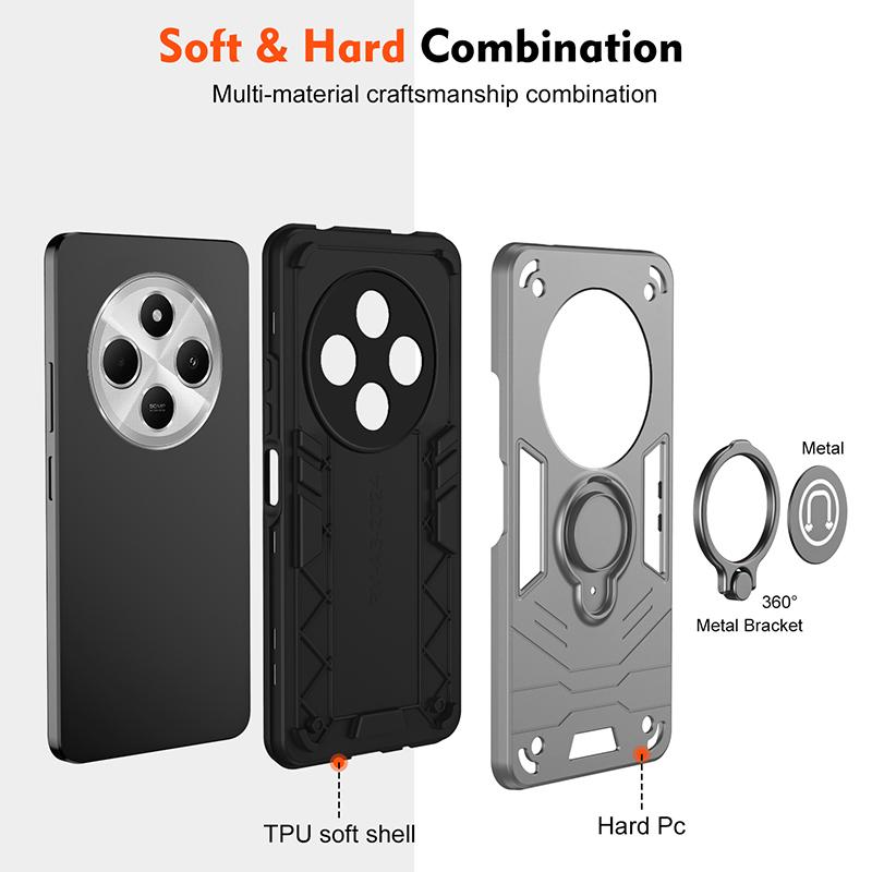 Противоударный бронированный чехол-подставка с магнитным кольцом для телефона Redmi 14C, чехол для защиты камеры Redmi 14C, чехлы для Redmi 14C