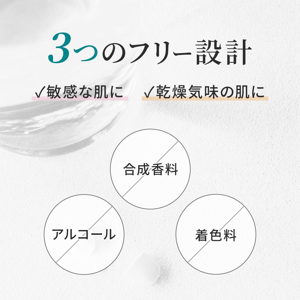 [Free formula] Developed without the use of alcohol, synthetic fragrances, or synthetic coloring agents, it is a formula that is gentle on sensitive skin.