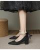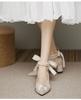 Летние женские босоножки с ремешком на щиколотке, с бисером, с острым носком, на среднем каблуке, женские туфли-лодочки с жемчужной цепочкой и бантом для свадебной вечеринки