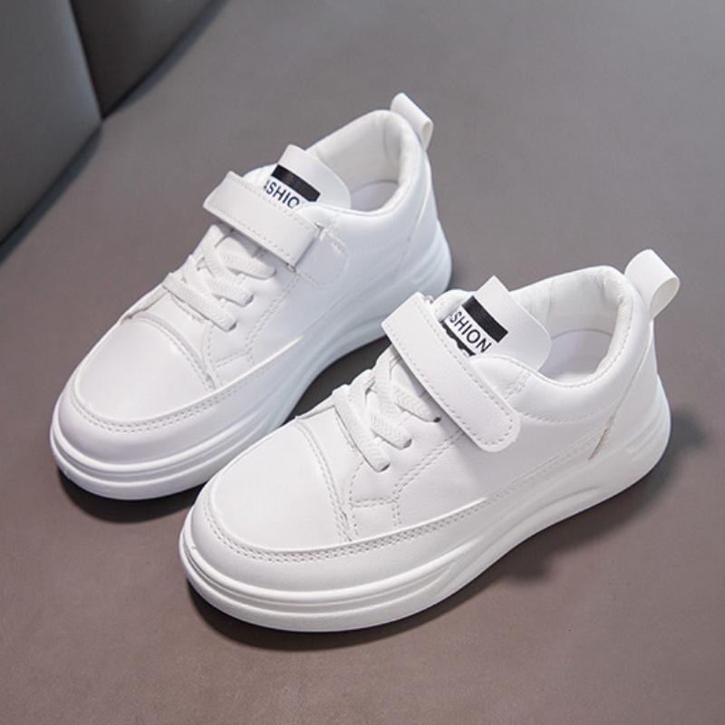 Детские белые кроссовки для мальчиков, дышащая спортивная обувь для бега, для девочек, мягкая подошва, плоская повседневная обувь на платформе, застежка-липучка