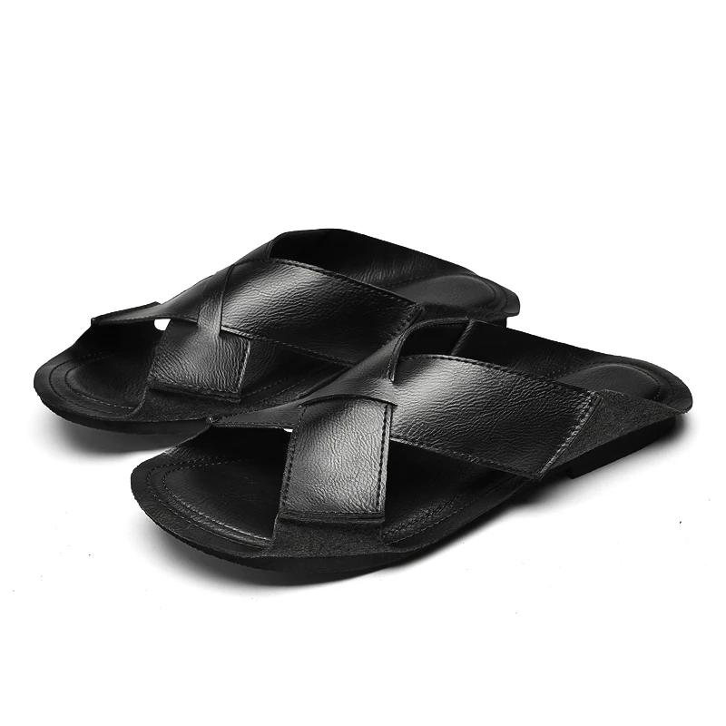 Мужские тапочки из натуральной кожи, летние, ручной работы, дышащие, шлепанцы, нескользящие, пляжные тапочки, высококачественные повседневные сандалии