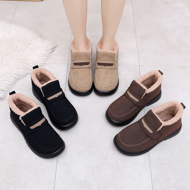2024 новые зимние женские модные зимние ботинки для отдыха в помещении и на открытом воздухе, нескользящие теплые плоские женские хлопковые ботинки для снега