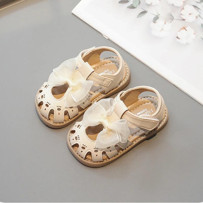 Сандалии для маленьких девочек, летние, принцесса, милые, кружевные, с бантом, плоские сандалии для детей, повседневные, модные, элегантные, бежевые, детские, пляжные сандалии