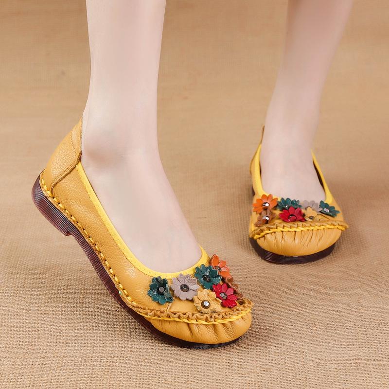 Высококачественные балетки с цветочным принтом в стиле ретро, женская обувь, новые трендовые лоферы, женская обувь из натуральной кожи, женские шлепанцы, мягкие мокасины