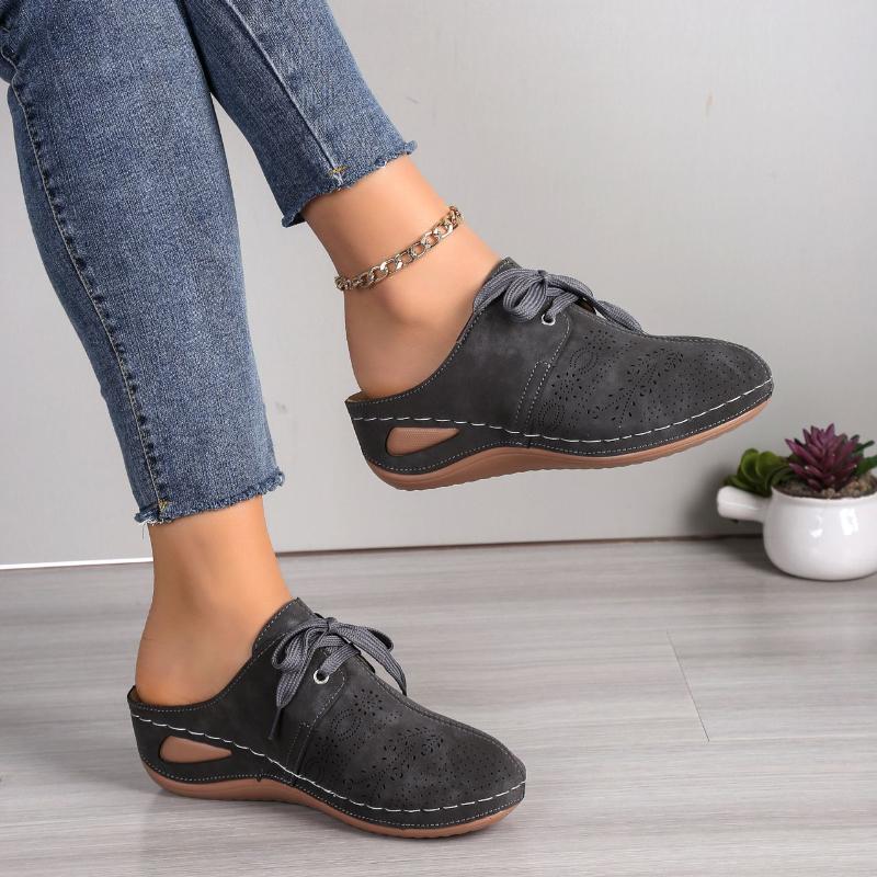 2024 Новые полые тапочки женские толстые каблуки закрытый носок женские уличные тапочки с круглым носком на шнуровке танкетке ленивые тапочки