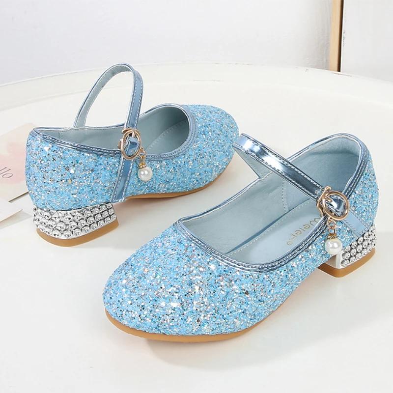 Принцесса Девочки Высокие каблуки Весна Осень Дети Свадебное платье Кожаные Туфли Повседневные Универсальные Блестящие Пайетки Детские Одиночные Туфли — купить товар онлайн с бесплатной доставкой по всему миру!