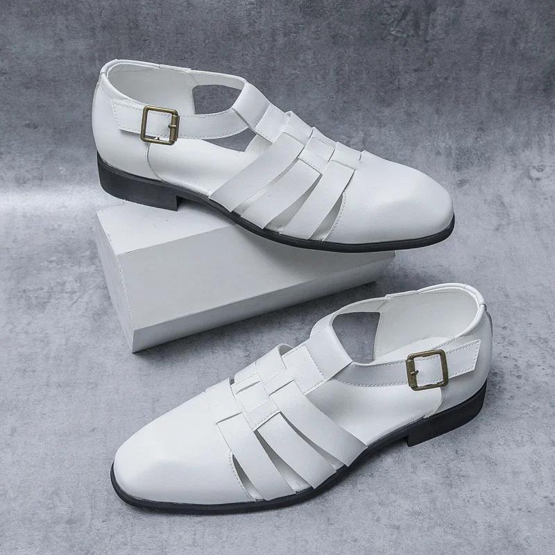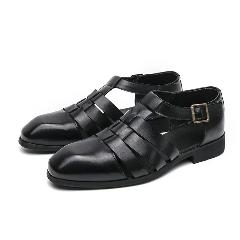 2024Новые туфли на плоской подошве класса люкс с круглым носком, удобные дышащие сандалии для активного отдыха, универсальные летние повседневные кожаные туфли
