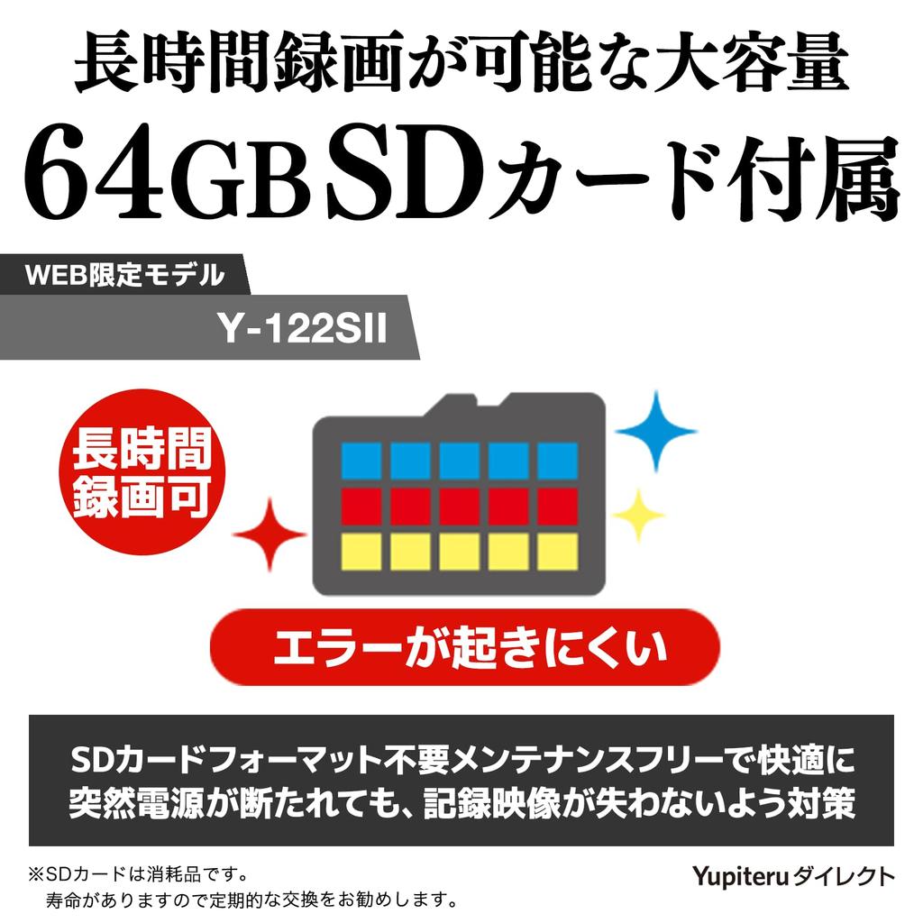 Web Dash Cam with Front and Rear Parking and 64GB microSD Card to the [Yupiteru Exclusive] Y-122S Cameras, Starvis2, Monitoring, GPS, G-Sensor