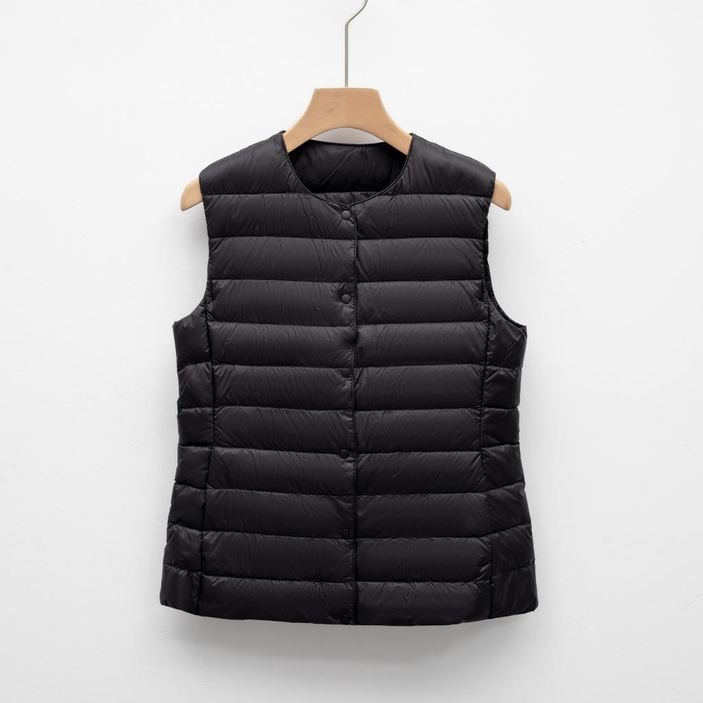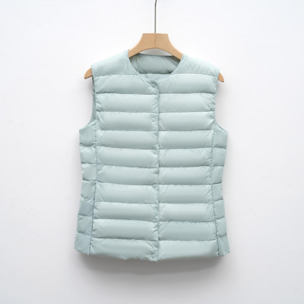 Женский пуховый жилет-подкладка, короткий, без рукавов, легкий, внутренний слой, осень/зима, с круглым вырезом, пуховая подкладка