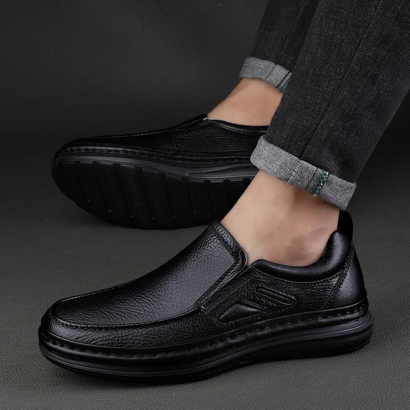 Мужская обувь из натуральной кожи, повседневная мужская обувь ручной работы, высококачественные деловые туфли без застежек, новые мужские удобные туфли на плоской подошве